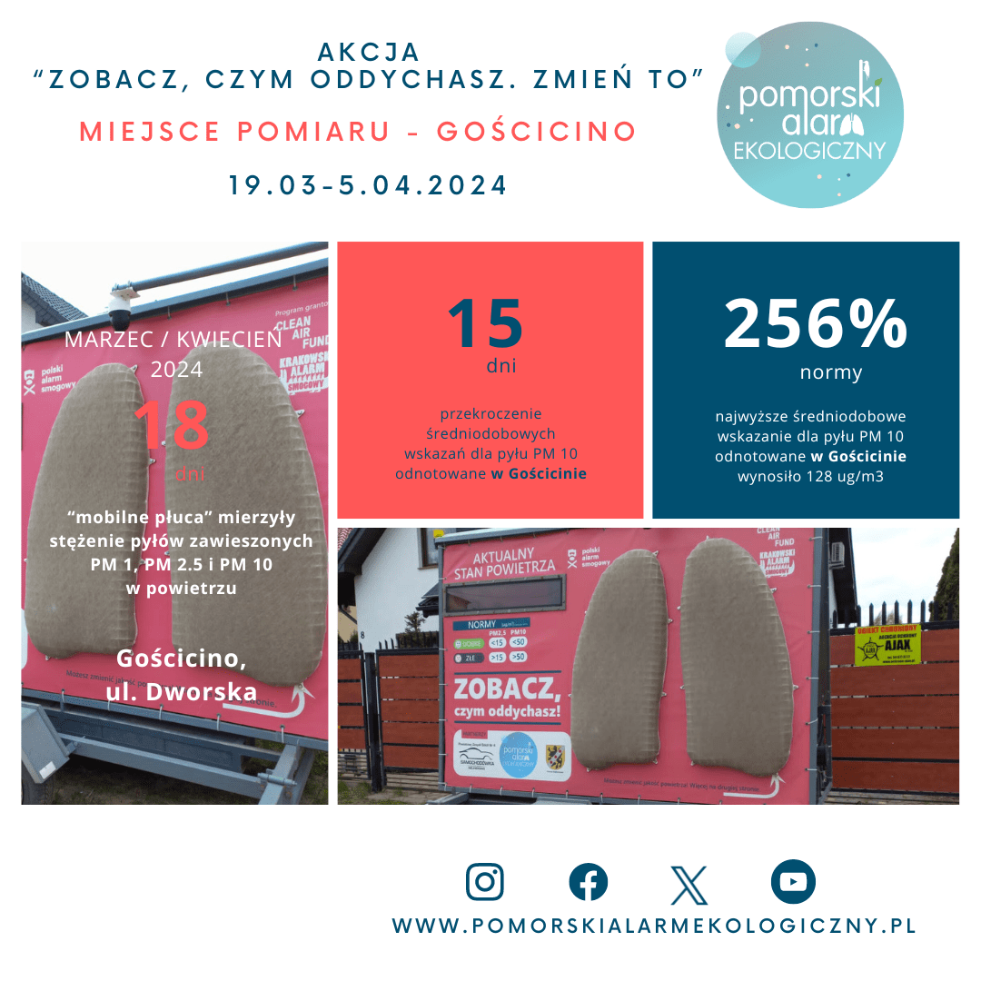 Sytuacja nadal jest niepokojąca. Instalacja „mobilnych płuc” wiosną tego roku miała na celu dokumentowanie wydawałoby się pozytywnych zmian w jakości powietrza, jednak w ciągu 18 dni pomiarowych, jedynie przez 3 dni nie odnotowano przekroczeń norm. Raport z Gościcina rzuca nowe światło na skalę problemu zanieczyszczenia powietrza w Gminie Wejherowo. Szczegółowe wyniki i analizy dostępne są w artykule.