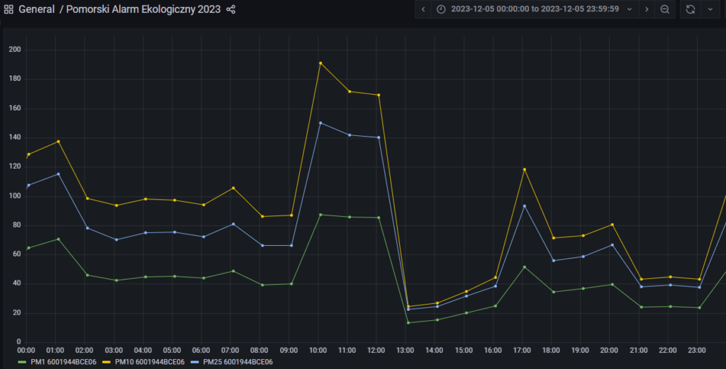 Już od rana w mediach społecznościowych informowaliśmy, że w tym dniu należy szczególnie śledzić czujniki, ponieważ od godziny 7:00 rano wskazania jakość powietrza określana była jako “zła i bardzo zła”. Na wykresach z tego dnia widać w niektórych miejscach, jak złudne okazuje się przekonanie, że smog występuje najczęściej godzinach popołudniowo-wieczornych. W wielu miejscach najwyższe wskazania były między godziną 9:00 i 10:00 (np. w Orlu było to ponad 190 µg/m3 ).